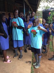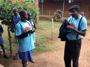 Dr. John Wathum-Ocama talking to Susan and Joan during recent visit to Uganda School for the Deaf in Ntinda Uganda.